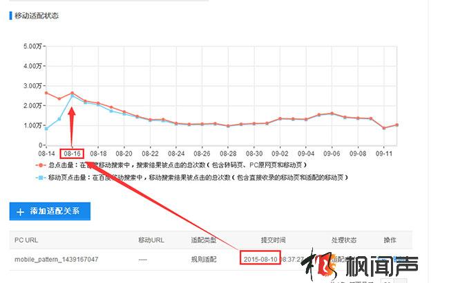 不管使用哪種方式,適配成功后都要持續保持PC頁和移動頁的適配關系,因為百度會繼續檢查適配關系是否正常是否生效,如果發現適配關系不正確,之前生效的數據也會轉為失效,影響移動流量。