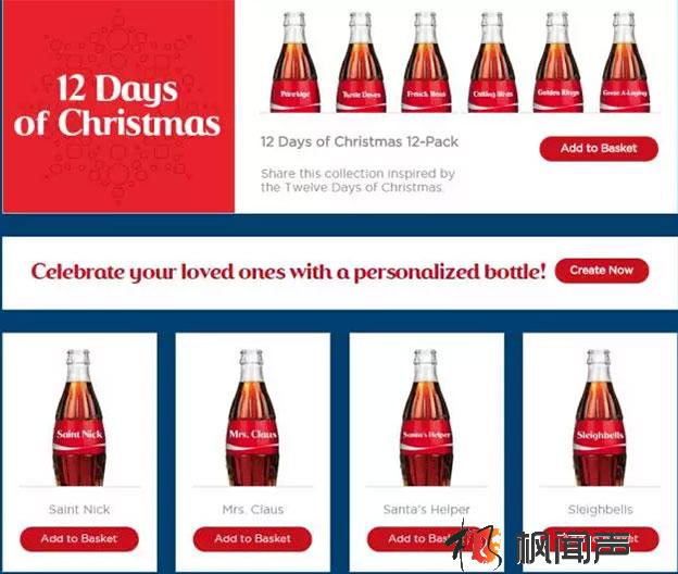 可口可樂季節性的昵稱瓶包裝已經成為其營銷戰役的重要部分,而這一次,由于圣誕節特定的時間點和人物,它們又推出了新一系列的昵稱瓶,共 12 款新昵稱瓶其中包括「Santa」「Kris Kringle」「Father Christmas」「Saint Nicholas」等等,顧客可以登陸網站進行在線的訂購。