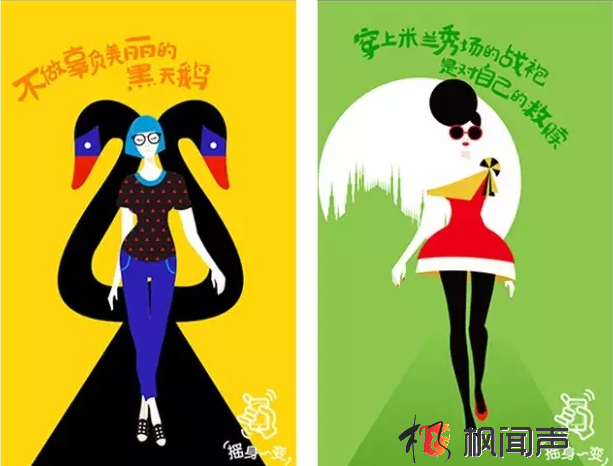 來自背景LXU團隊的H5作品,利用了重力原理通過搖一搖換裝,就在一秒之間讓畫面內的女孩瞬間變換出不同地域風格的著裝。畫面感非常鮮艷時尚;里面有一句話
