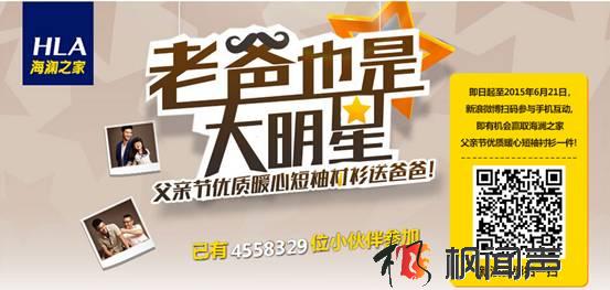 海瀾之家成為了話題#父親節#的總冠名,借助微博話題參與討論,并在父親節前夕通過#父親節#及#老爸也是大明星#的熱門話題,吸引用戶參與H5互動,抽出獎品送老爸,這一溫情活動立刻吸引無數網友的互動和轉發。