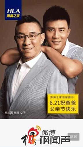 為了完成這一目標,6月20日—6月21日,海瀾之家還在微博投放了超大流量的入口“開機報頭”,但在如此珍貴的一秒鐘時間里,海瀾之家并沒有提半個字產品,只是放了杜淳和杜志國父子的合影,海瀾之家溫馨提示:6.21祝爸爸父親節快樂。