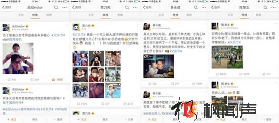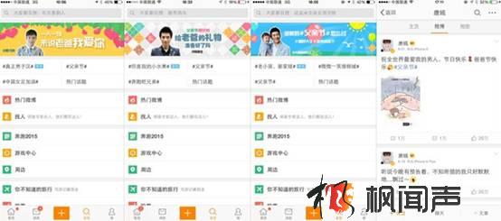開放的明星微博資源是微博的核心武器之一,原本遙遠如珍貴“擺件”般的明星代言可以在微博上“活”起來,走下“神壇”,和普通粉絲一起互動。尊老愛幼的情感是共通的,明星率先表達對父親的感恩可以帶動粉絲形成話題熱潮。