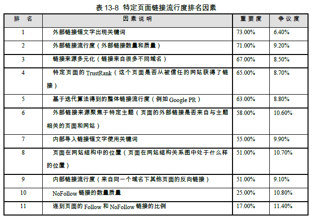 (3)14項特定頁面鏈接流行度排名因素;