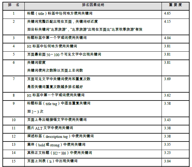 (1)與關鍵詞有關的30項頁面排名因素;