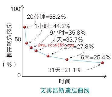 德國心理學家艾賓浩斯研究發現,遺忘在學習之后立即開始,而且遺忘的進程并不是均勻的。最初遺忘速度很快,以后逐漸緩慢。