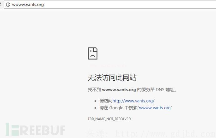 圖中能夠 見到,DNS的分析十分輕便,應用UDP協議書,一個DNS查尋包,一個回應包,2個包拿下,簡約輕便,高效率。可是在具體全過程中常常會碰到一個難題:鍵入網站域名的情況下如www.vants.org,一不小心多鍵入一個w變為wwww.vants.org,那樣的話,能夠 一切正常分析嗎?我做了一下試驗,在電腦瀏覽器鍵入wwww.vants.org,電腦瀏覽器立即出錯“無法打開此網站”,