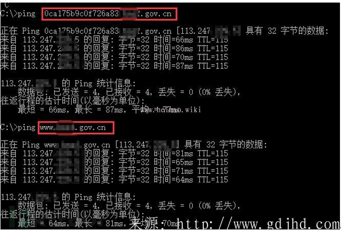 ,根據ping檢測,發覺域名分析到61.191.*.*,而泛解析卻被分析到23.105.65.113,這一IP是英國的IP。DNS的泛解析結果毫無疑問被網絡黑客故意改動了。,