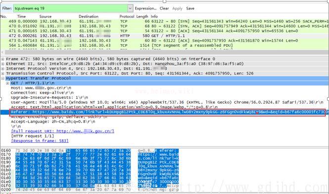 ,根據網頁搜索瀏覽時有referrer字段名,