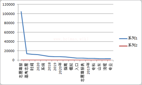 統計詞頻占比2%以上的歷史熱點搜索,我們得到如下關鍵詞:志愿填報、高考志愿、時間、系統、指南、模擬、入口、志愿填報表、專科、山東、流程、專業。(過濾年份)
