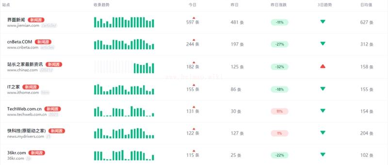 新聞源站點當日收錄數據: