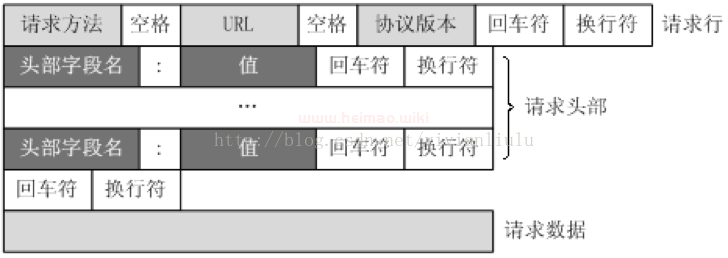 客戶端發(fā)送一個(gè)HTTP請(qǐng)求到服務(wù)器的請(qǐng)求消息包括以下格式:請(qǐng)求行(requestline)、請(qǐng)求頭部(header)、空行和請(qǐng)求數(shù)據(jù)四個(gè)部分組成。