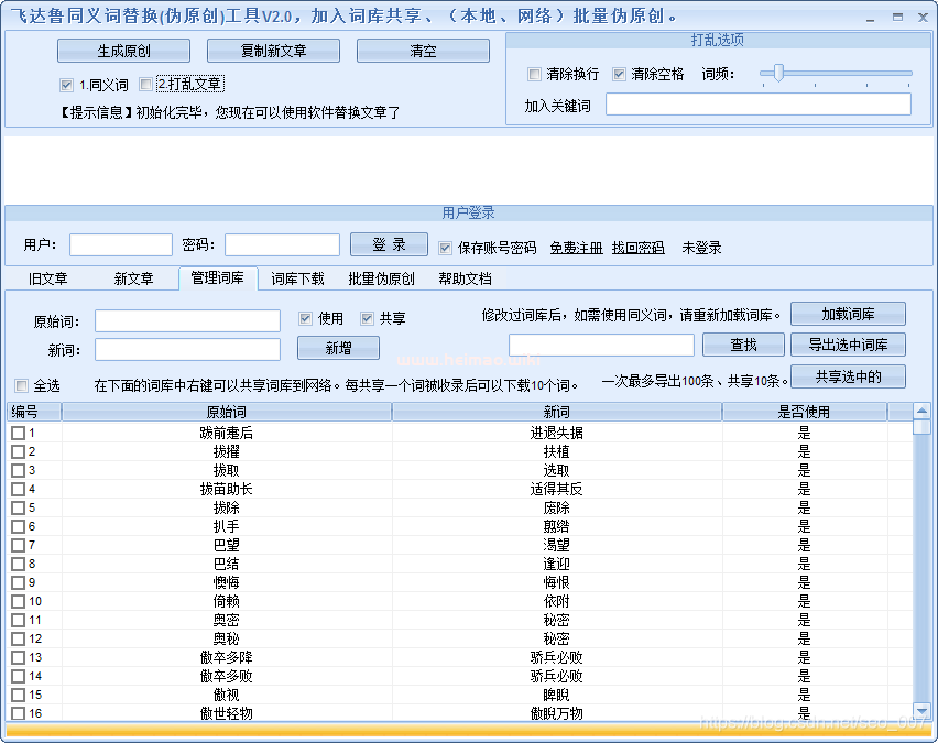 6、飛達(dá)魯同義詞替換偽原創(chuàng)工具。