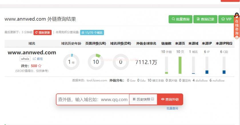 1 域名底子干凈,幾乎是新域名,基本無外鏈