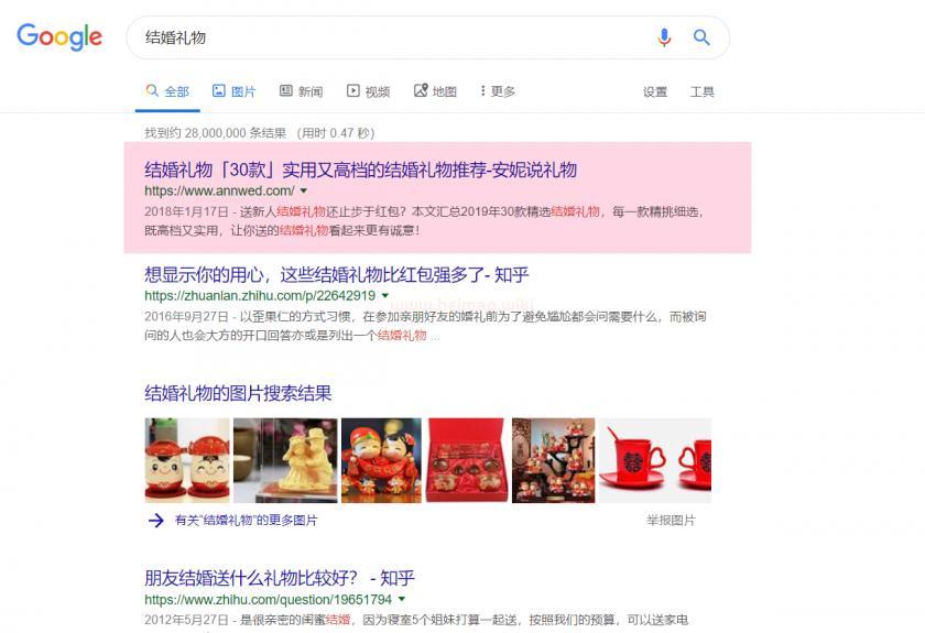 [結婚禮物]指數300+新站45天排名第2-百度谷歌雙首頁