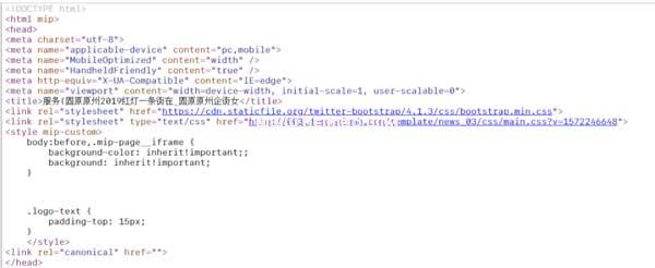 這個是正常內頁的頭部。明顯的,黑帽的還用的是HTML5,而正常的頁面還是用XHTML(HTML4.0過渡)。黑帽還是跟進新時代的,用最新的技術。
