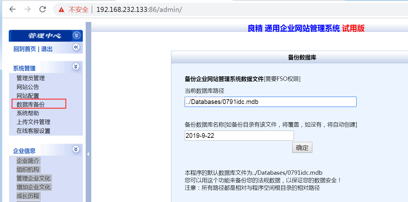 2.如果出現文件頭為database、jet db。表示實際備份的還是數據庫,我們提交的圖片馬并沒有備份到。這里嘗試添加管理員將shell寫進數據庫。然后再備份即可。這如果長度有限制,可以在審查元素修改maxlength或者抓包