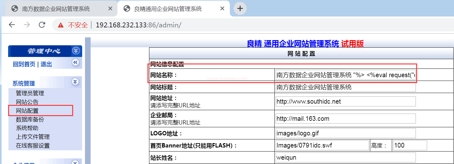 在網站后臺的一些配置接口中最終的配置結果會寫進網站配置文件,這里通過源碼的過濾規則進行閉合語句可以直接將shell寫進配置文件從而getshell。注意:網站后臺配置插馬屬于高危操作,如果閉合失敗網站將全面崩潰,不建議生產環境下操作。