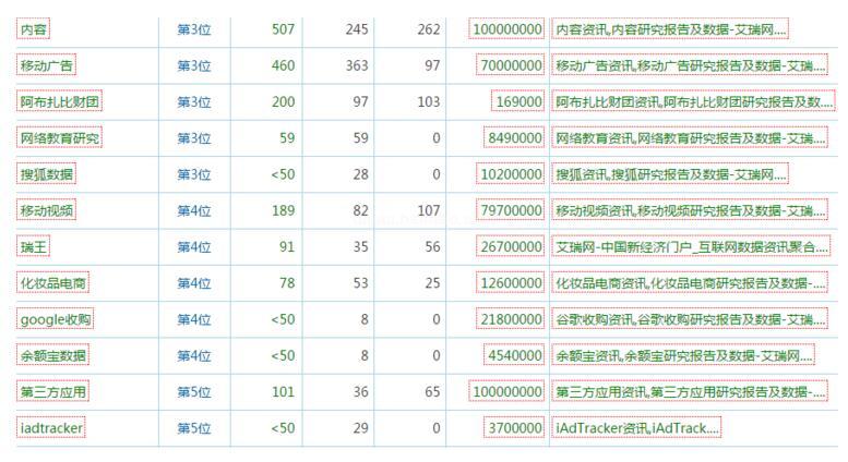 有人說SEO外鏈工具是通過刷搜索框沒有實際效果,艾瑞網給我們創造了奇跡,艾瑞網大部分的排名來源于站內的搜索頁面,其搜索頁面偽靜態,關鍵詞改色、標題優化、搜索內容分類等各種手法已經證實了他們使用的是搜索結果頁面參與排名,這是我見過第一個使用搜索結果頁參與排名的網站。
