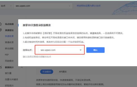 接著就會出現彈窗,選擇站點,這里可以選擇的站點基本上都是綁定了熊掌號的站點。