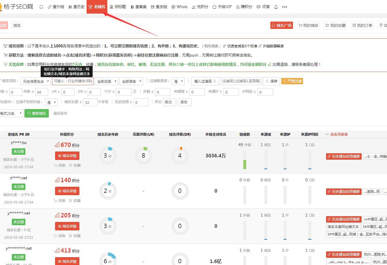 第三步:點擊查詢老域名(點擊歷史年齡優先)