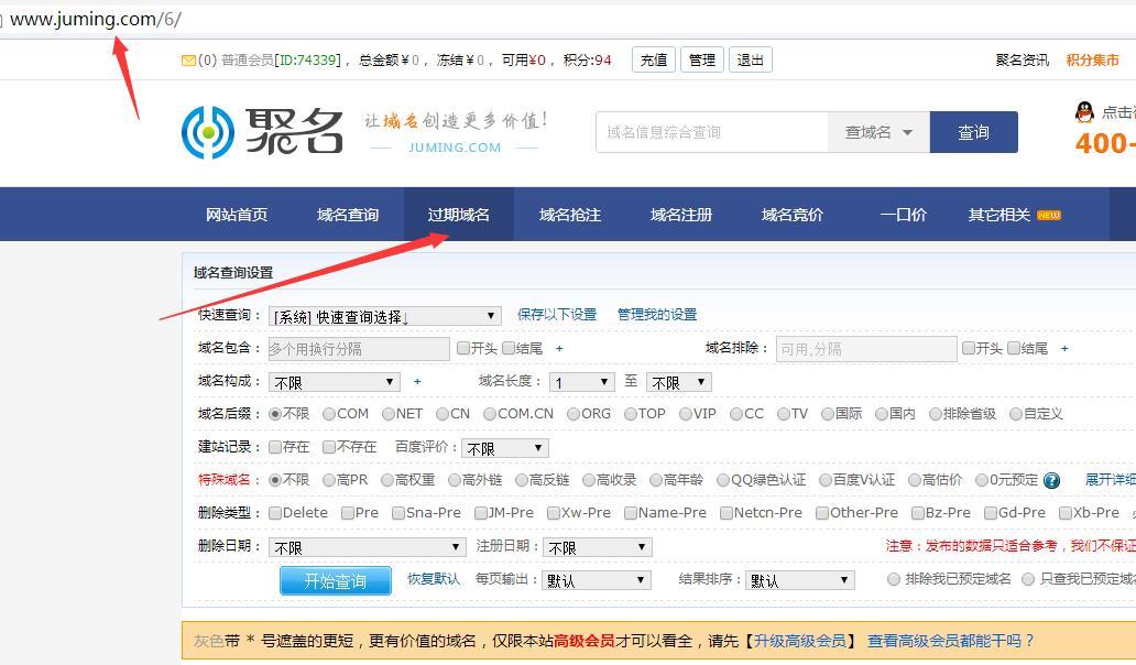 這個可以通過聚名網的過期域名欄目去搶注,下面是方法!