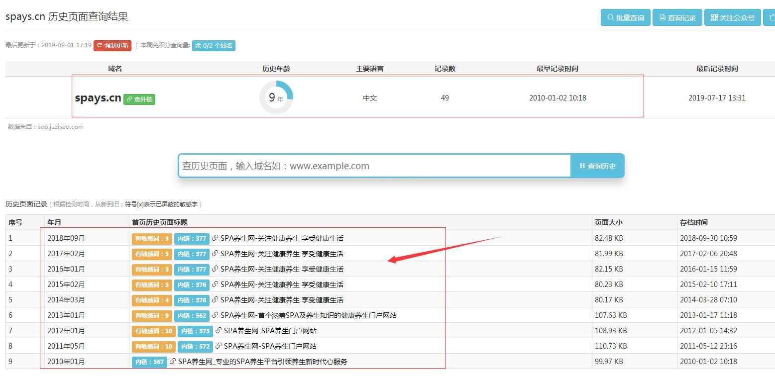 首先跟你們說一下這個核心思路,秒排技巧,我們獲取權重老域名以后,是可以通過一些技術,查詢他們的歷史快照的,我們可以通過快照的信息“title三大標簽、行業類型、網站欄目、URL”等等來進行網站建設,最大程序的還原之前的頁面類型,百度就會把權重繼承過來,當你網站還原以后,百度就會把之前的權重逐漸傳送過來,網站就可以達到快速排名,快速上權重的效果,持續一段時間,你可以進行改站,把網站改成你自己的行業,直接就可以快速起排名,達到你想要的效果。