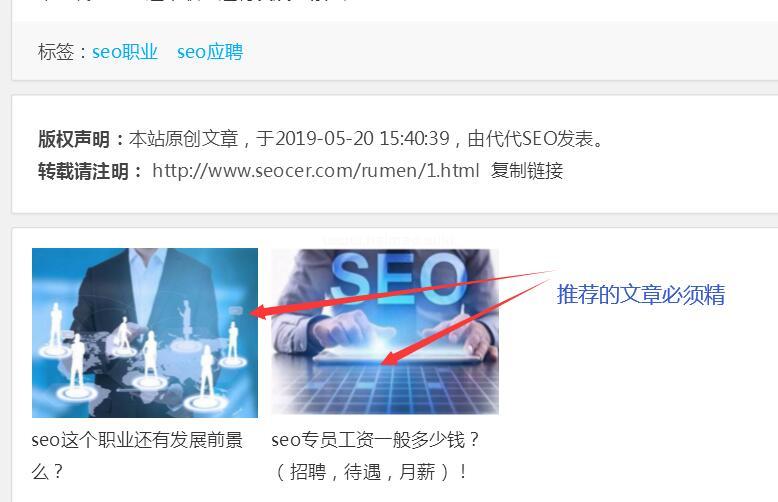 這邊順便講解下網(wǎng)站內(nèi)的點(diǎn)擊,站內(nèi)點(diǎn)擊,我們其實(shí)也是可以進(jìn)行增加的,比如:相關(guān)推薦這類(lèi)就是為了提升站點(diǎn)點(diǎn)擊量,我們?yōu)榱颂岣哂脩?hù)點(diǎn)擊,給用戶(hù)推送了很多相關(guān)的文章,是否推送精準(zhǔn)的相關(guān)文章,更能產(chǎn)生用戶(hù)點(diǎn)擊那?對(duì)的!推薦文章的精準(zhǔn)度是非常重要的(如圖)