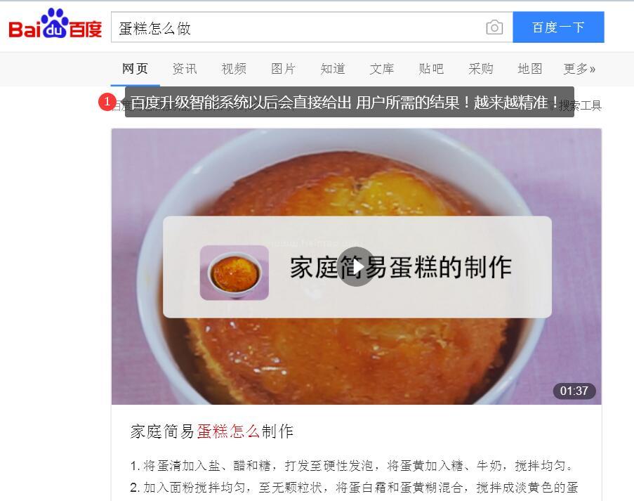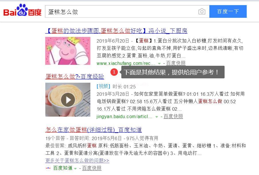 百度通過了幾年的努力,不斷的優化自己的系統,升級自己的系統,當用戶搜索問題時,百度會提供給用戶更加準確的信息內容,比如:當用戶輸入“蛋糕怎么做”,百度就會提供出所有匹配的內容,平均幾百萬的網頁數據,提供用戶參考,但是百度會考慮到,太多的網頁,用戶挑選不過來,就以一個智能的篩選系統,把優質的頁面,可以解決用戶問題的頁面,以每頁十個數據的形式,排列起來,通常1-10位的搜索結果,都是最符合,可以解決用戶問題的結果。