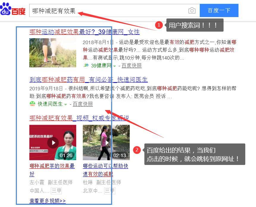 單單只給用戶提供網站的搜索,百度發現,并不能滿足大部分人群的需求,所以索性架設更大的服務器,把網站的內容,通過程序抓取,都收錄到百度搜索引擎數據庫中,這樣一來,當用戶搜索問題時,百度會通過程序判斷用戶的需求,給出對應標題的結果!(附圖,很容易理解)