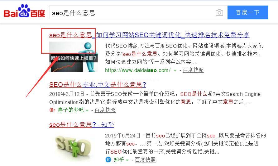 比如筆者“SEO是什么意思”,一直排在首頁前三,要知道,用戶搜索這個詞本意都是一些小白, 不明白SEO是什么,所以我們就要把這類訊息更新出來,這樣的話,就比較容易排名我們的網站, 因為滿足了用戶,同時也滿足了百度。