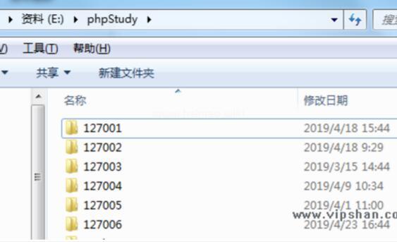 1.在E:\phpStudy這個(gè)文件夾下面創(chuàng)建站點(diǎn)存放目錄,假設(shè)我這里創(chuàng)建127001、127002、127003等幾個(gè)文件夾,這些文件夾用于存放你接下來要搭建的多個(gè)站點(diǎn),這樣命名是為了方便管理。當(dāng)然你也可以命名為:1001、1002、1003,只要你能看懂即可!