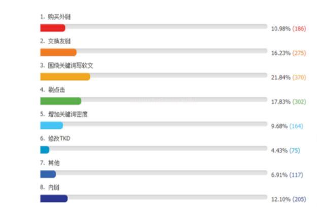 網站關鍵詞一直排名不上去的原因分析,以下截圖是通過幾千人投票,而得出的結果,看看大家都是用那些方式進行排名的,進而得出一個比較多的結果,你也可以去應用,從投票中我們可以明確的看到,大部分人還是通過刷點擊或者圍繞關鍵詞去做的排名,現在的快速排名也真是如火中天,大部分人都是依靠著這類進行的排名。