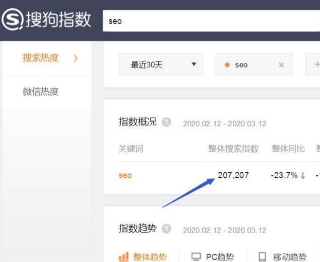 搜狗搜索引擎的競爭比較小,這個是大家公認的,不像百度引擎,大家都在瘋搶,并且搜狗的競價,都會比百度少了很多,其實搜狗流量雖然小了點,但如果你能專注把搜狗做好,你的網站流量也是不會少的,據我統計,搜狗的用戶量也不算少,畢竟是國內第三搜索引擎,比如“SEO”這個行業,搜狗指數,每個月高達20萬,也不低吧,如果你能把SEO優化到首頁,那么每個月平均流量最少也要10萬+吧。