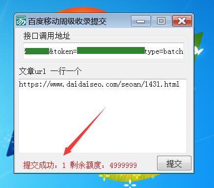 2,打開軟件,上面輸入API,下面輸入網站鏈接。提交即可!