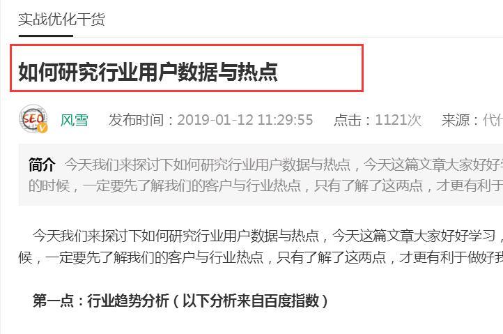 當然,如果在修改不方便的時候,咱們唯一的解決辦法就是新發布一篇文章,整合老的內容和新增的內容發布出來,這個時候這篇文章的質量是高于自己站點老文章,同時也是高于站外同行的文章,排名自然是唾手可得!