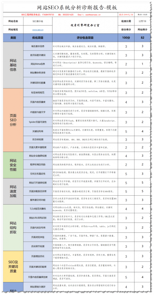 下面是給大家分享的一份專業《網站SEO診斷打分表》供大家參考學習,按需下載學習。