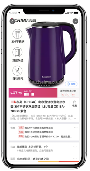 畫質超清,有歷史售價、優惠活動倒計時、視頻展示功能,評論區有標簽分類和好評度為用戶提供參考。