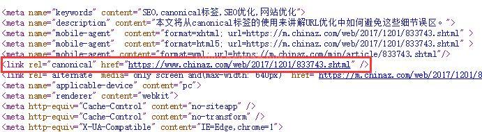 canonical標(biāo)簽網(wǎng)頁中的應(yīng)用