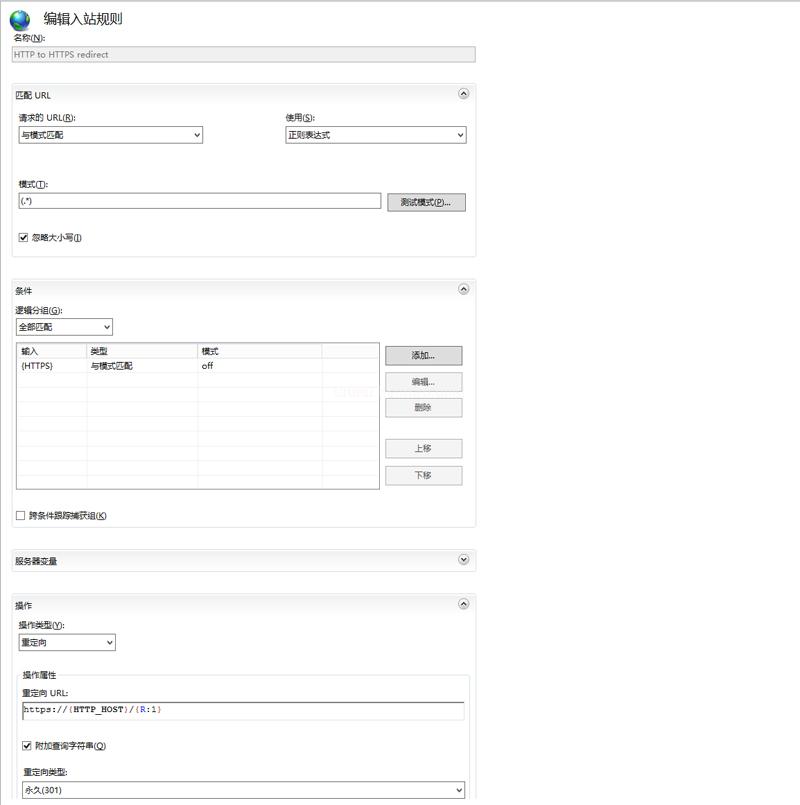 </rewrite>//網站http自動跳https規則設置