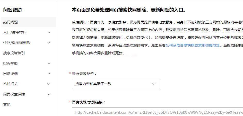 百度站長平臺反饋百度快照問題