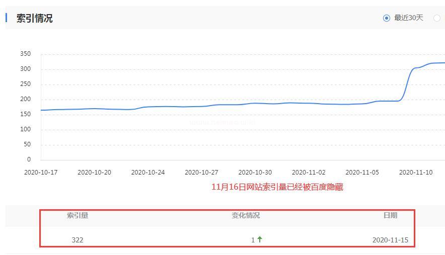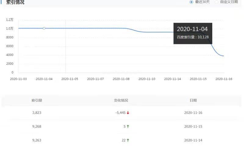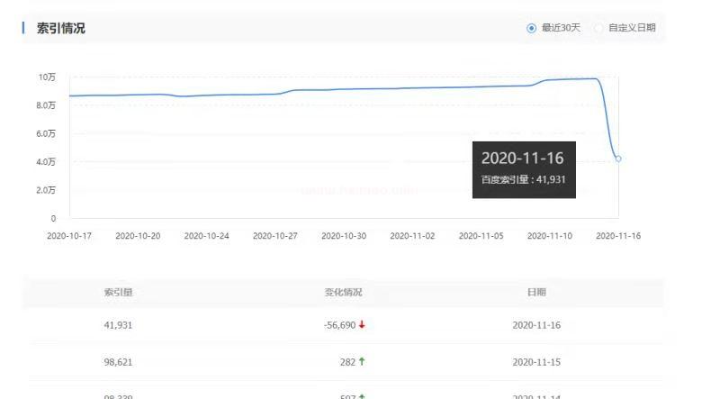 從百度站長平臺后臺網站11月16號的網頁的索引量已經刪除的情況來看,很大機率是百度自身服務器的問題。