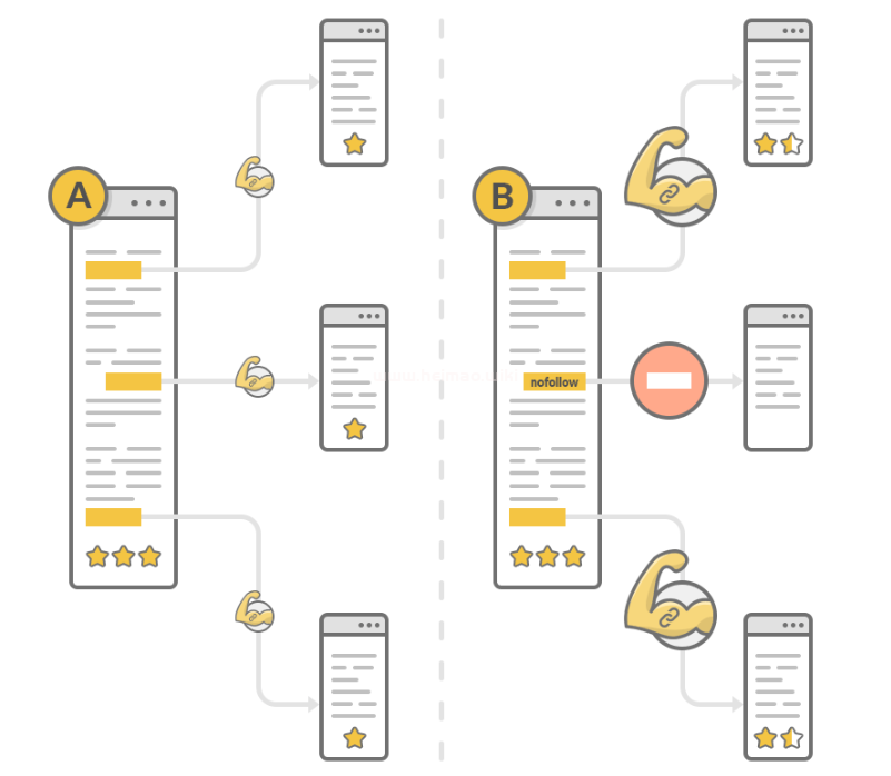 (下面一張圖為大家演示nofollow和權(quán)重投票原理)