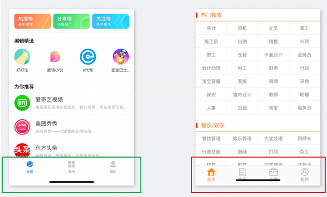 左圖正面示例:黑色橫條未遮擋頁面主體內容;右圖反面示例:未適配ISO全面屏內容,底部黑色橫條遮擋了頁面功能鍵。