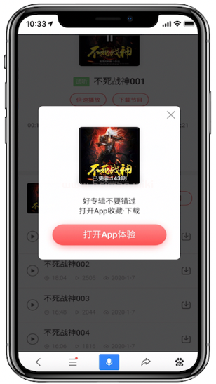 反面示例:底部輪播APP下載廣告,不符合要求。