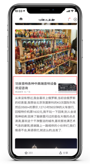 頂部嵌入不超過該屏面積10%的圖文廣告樣式。