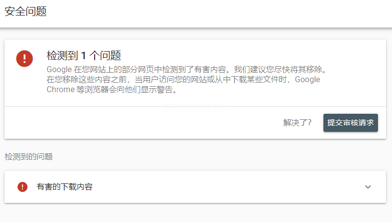 Google瀏覽器收到你提交恢復(fù)正常訪問審核的請求,但仍然在你的網(wǎng)頁上檢測到了惡意程序代碼,所以當(dāng)用戶訪問你網(wǎng)站頁面時(shí),仍然會有“您訪問的網(wǎng)站包含惡意軟件”相關(guān)提示。