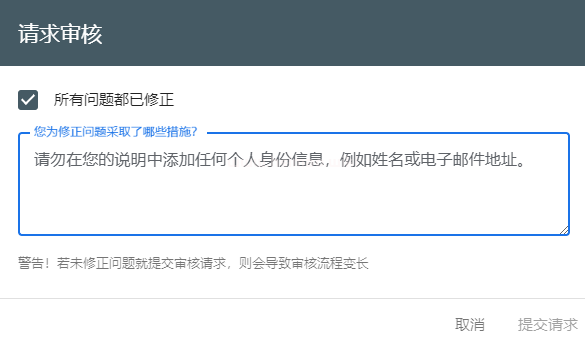 如果安全問題未處理就向谷歌瀏覽器提交恢復(fù)正常訪問的審核,審核時(shí)間會變長,甚至審核會不通過。