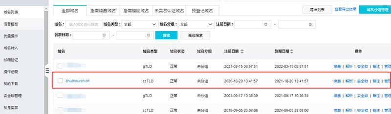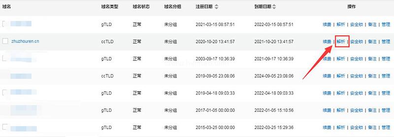 1、先登錄阿里云域名管理平臺,點擊“域名”,進入域名管理列表,如下圖所示: