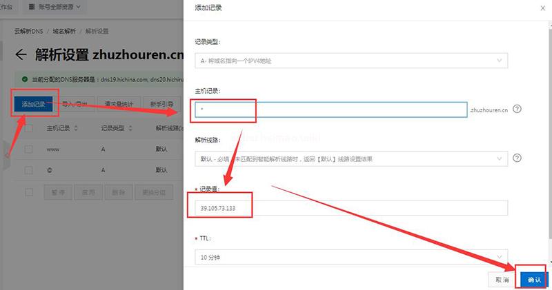 點擊確定以后,域名泛解析記錄就成功添加完成了。