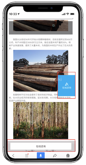 咨詢按鈕懸浮在頁面底部,面積合規(guī)